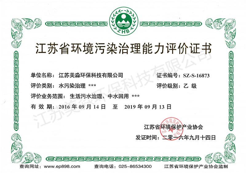 江蘇省環(huán)境污染治理能力評價(jià)證書 乙級(jí)