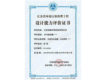 江蘇省環(huán)境污染治理工程設(shè)計(jì)能力評價(jià)證書-丙級(jí)
